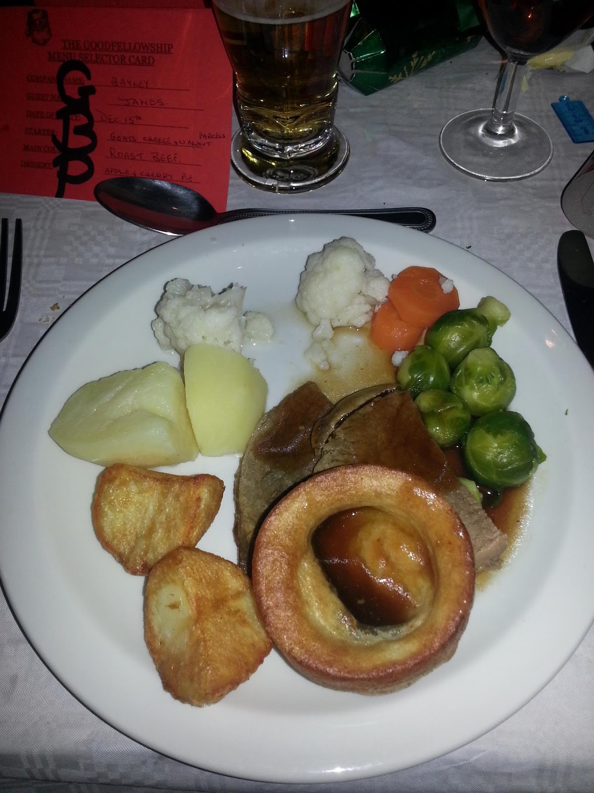 When I bit into the vegetables, a whole glass of water ran out. The beef was well done, despite the DJ informing us it was medium-rare (he also advised that the music wasn’t too loud, not that anybody could talk to anybody). The yorkshire pudding was ok. I heard someone say it was edible. I grant it that status.